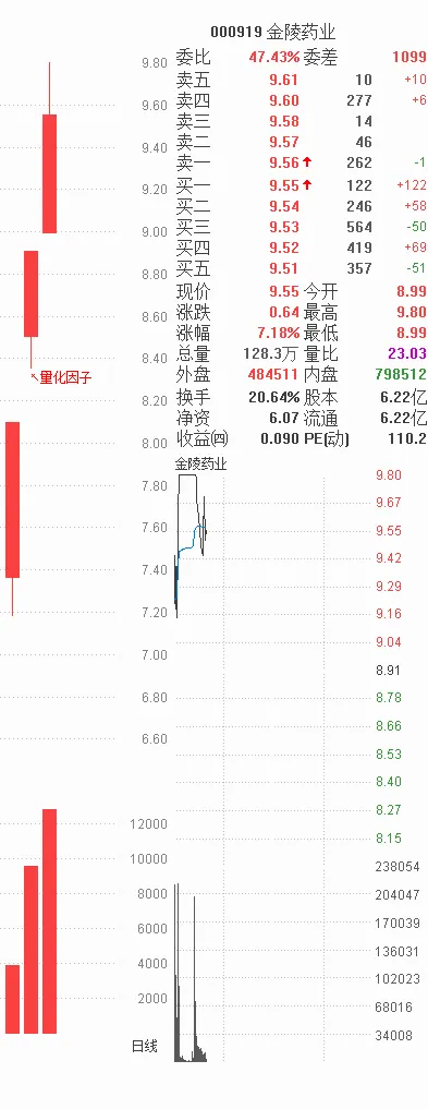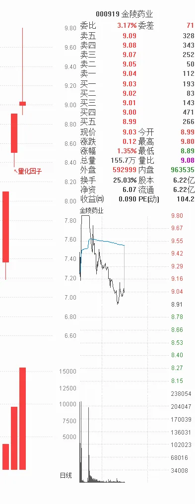 金陵药业:昨天发现量化因子,提前一天就能锁定。原文:金陵药业 马上有钱