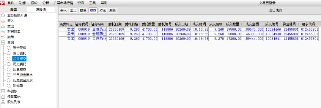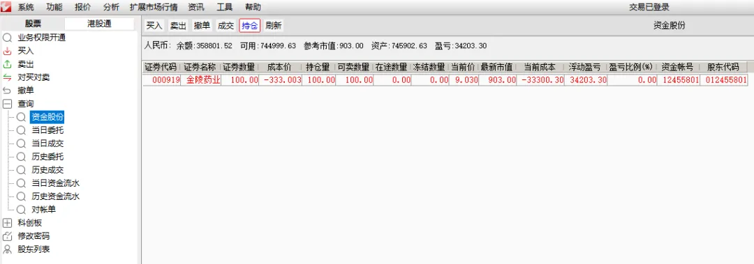 金陵药业:河南省郑州市战友发来证券账户截图显示:今天上午,卖在阳线,盈利34203.30元,马上有钱。有图有真相。