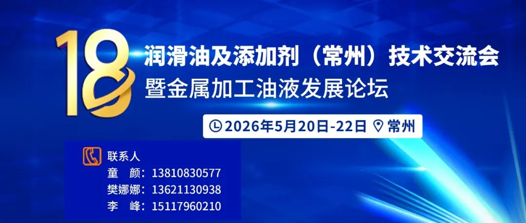 “2026年第十八届润滑油及添加剂(常州)技术交流会暨金属加工油液发展论坛”将于5月20-22日在江苏·常州盛大启幕!南京明亮油品添加剂有限责任公司与您相约,期待与更多参会企业齐聚盛会,促进产业链上下游对接与合作,助力行业把握机遇,共同应对挑战,推动润滑油行业高质量发展。