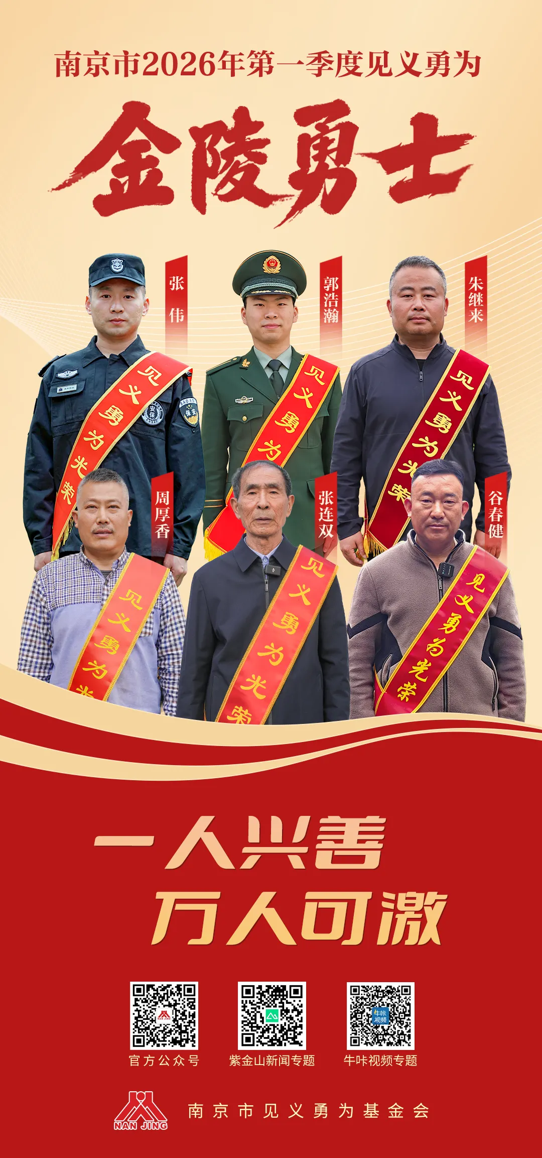 4月9日,南京市2026年第一季度见义勇为“金陵勇士”发布,6名见义勇为人员光荣上榜。