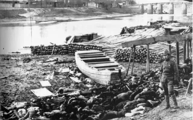 南京大屠杀的血腥行径从此开始,日本禽兽在南京肆虐了整整六个星期,导致三十多万人在日本军刀下丧生,南京的街头河水都变成了血河。