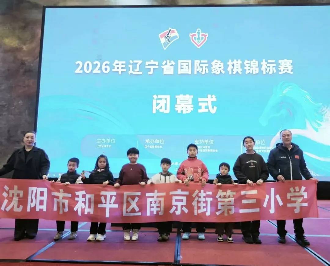 2026年4月4日至6日,由辽宁省体育局、辽宁省体育总会、辽宁省国际象棋协会主办的辽宁省国际象棋锦标赛在沈阳落幕,全省800余名棋手参赛。我校18名小棋手沉着应战、发挥出色,从众多强队中脱颖而出,斩获团体总分第二名的优异成绩!