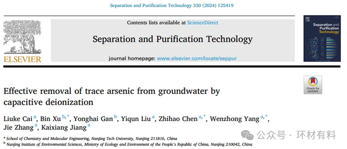 解决地下水砷污染的传统方法有沉淀法、电解法、离子交换法和膜分离法。然而,这些常规方法存在二次污染、运行成本高、再生复杂、运行维护困难等问题,难以大规模推广。吸附法具有操作简单、可再生回收、低污染等优点,是目前应用最广泛的除砷方法。许多吸附剂已被用于修复砷污染,如活性炭、壳聚糖和铁矿物。地下水中砷一般以五价或三价形态存在。As (V)一般以HAsO42-的形式存在,而H3AsO3是地下水中As (III)的主要形式。与As (V)相比,这些材料在去除未带电的As (III)方面的效果通常较差。同时,这些材料一般用于去除高浓度砷(>10 mg/L),出水浓度一般高于1 mg/L,而地下水中砷污染物的实际浓度一般在10 ~ 1 mg/L之间。