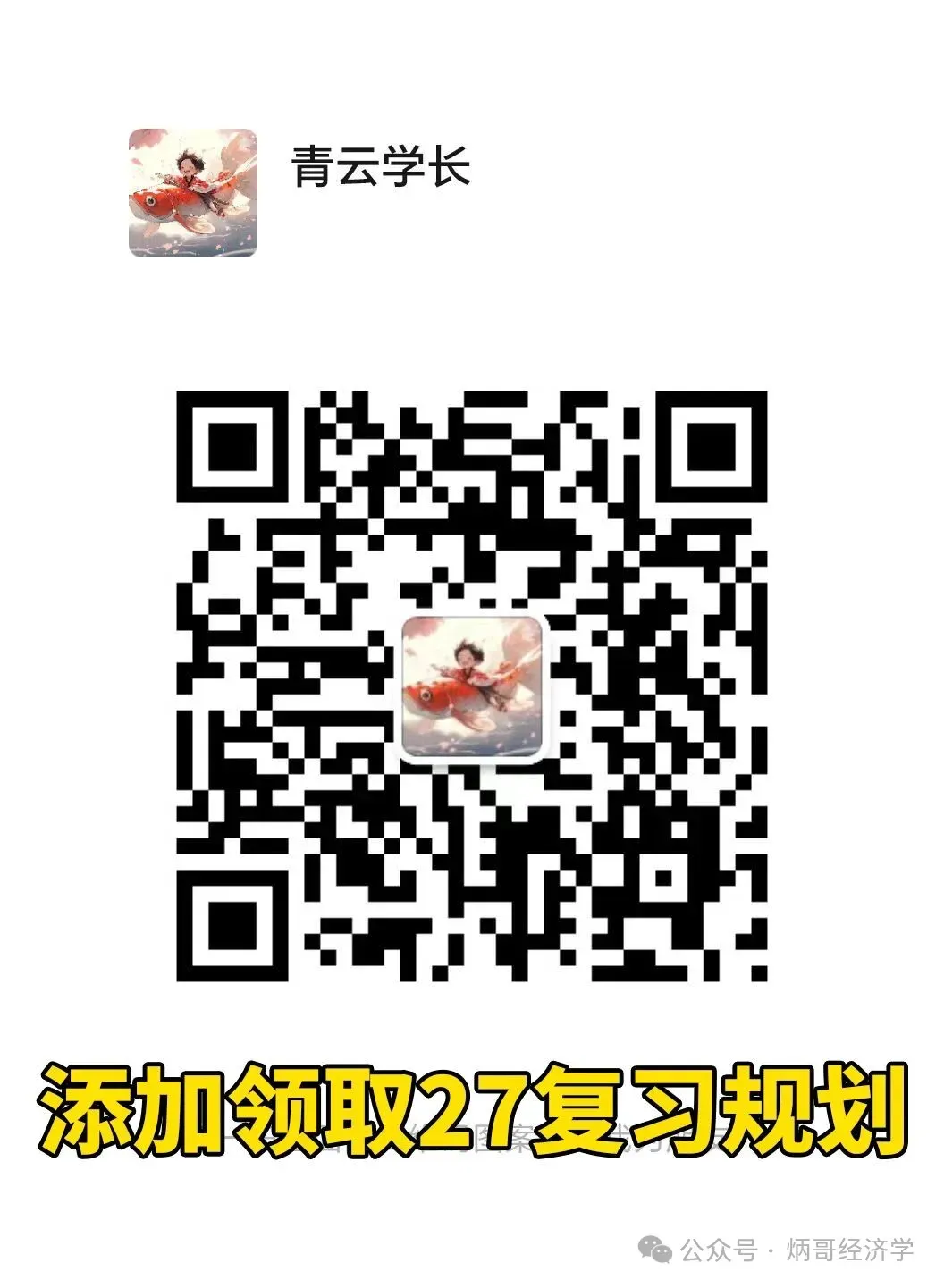 如果27的同学还有择校、报录比、院校分数线、就业、备考等等一系列问题,都可以咨询青云老师!备注公众号炳哥考研经济学公众号