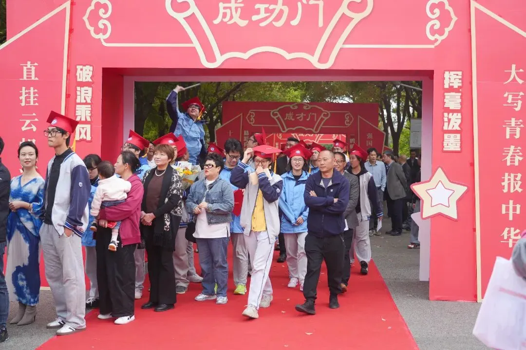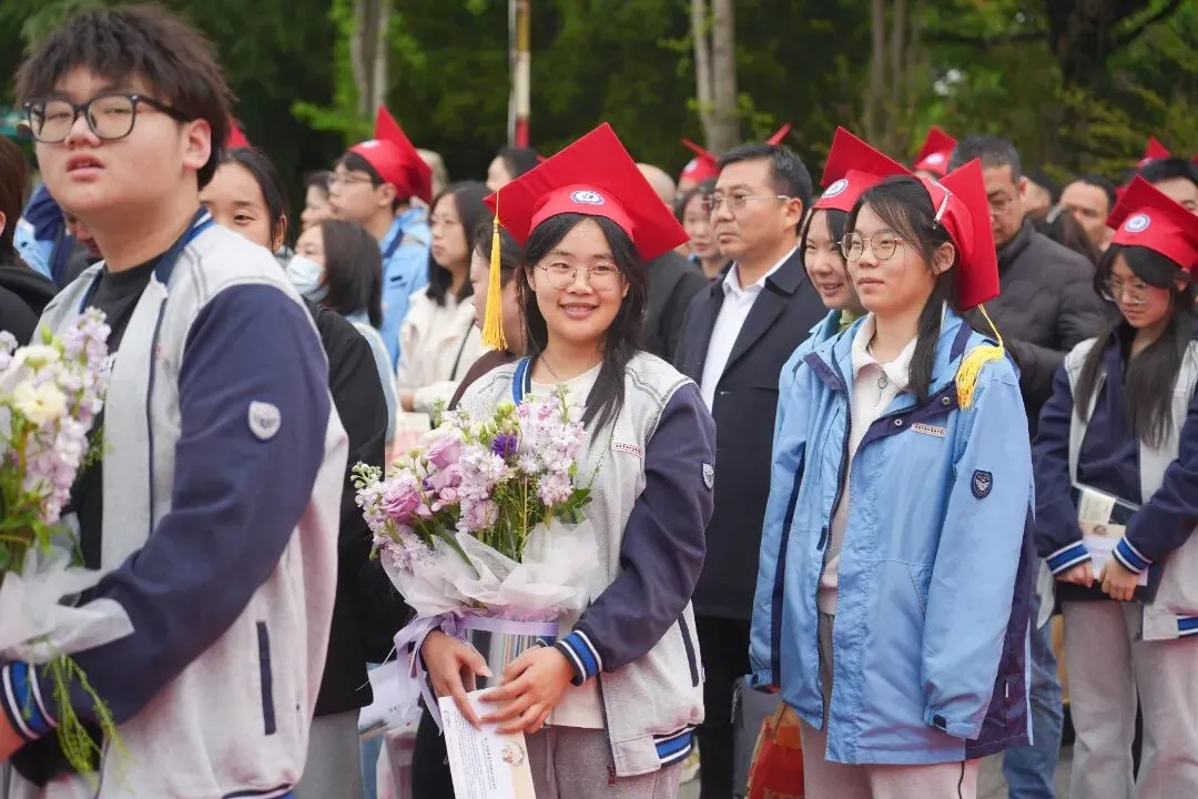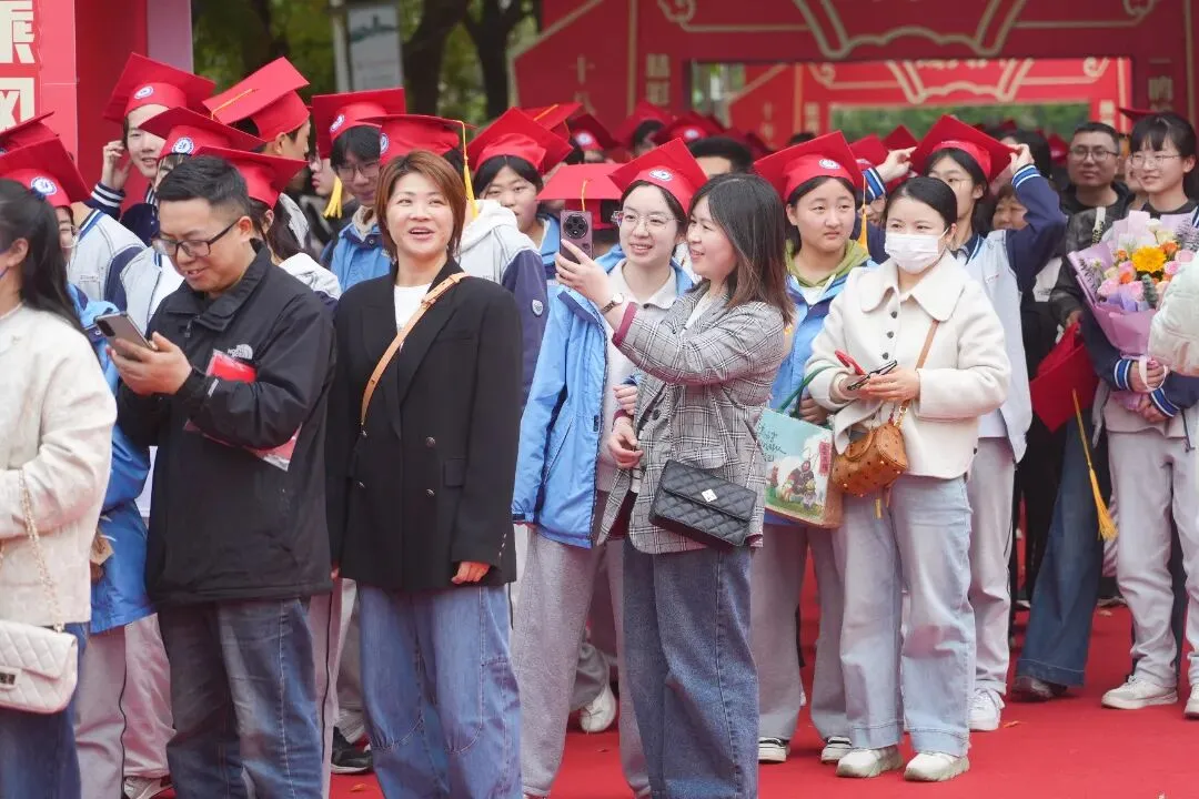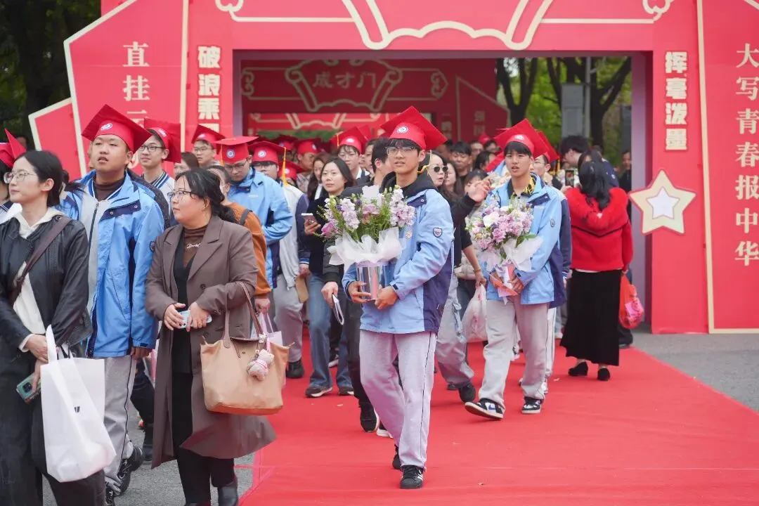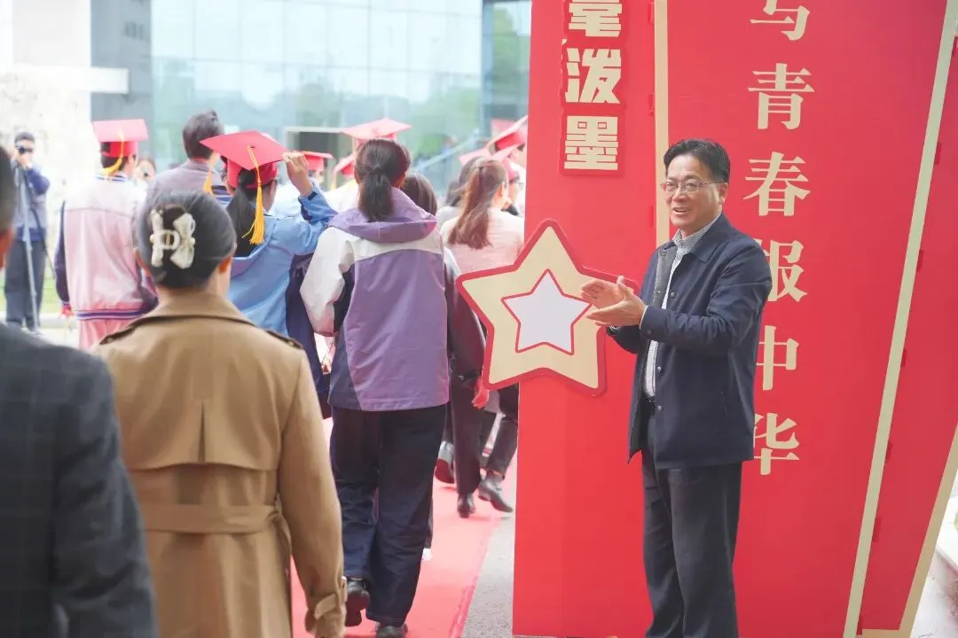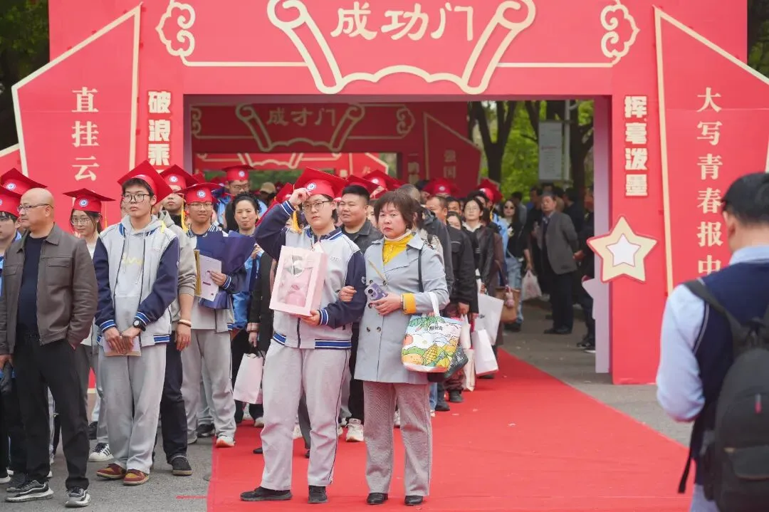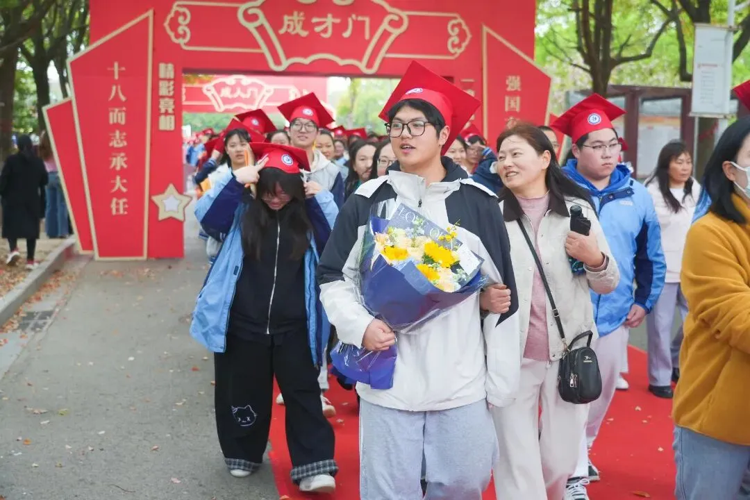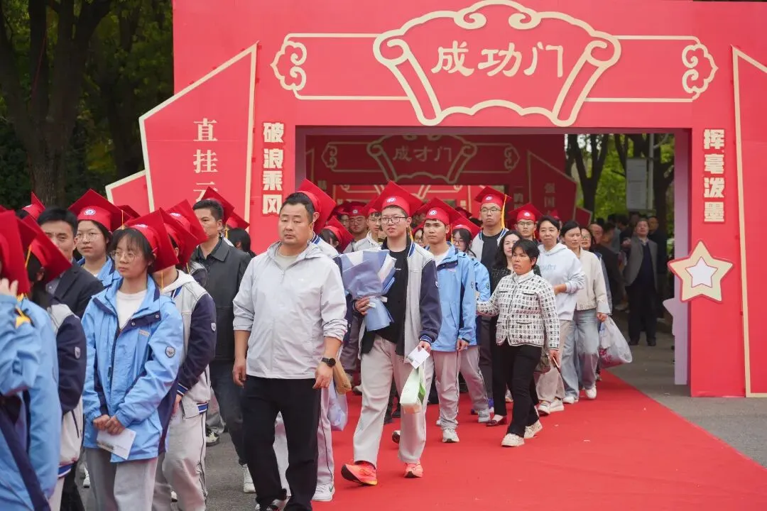 校领导与老师们在两侧见证学子们迈入成人门的关键时刻,为他们的逐梦之路注入温暖力量。
