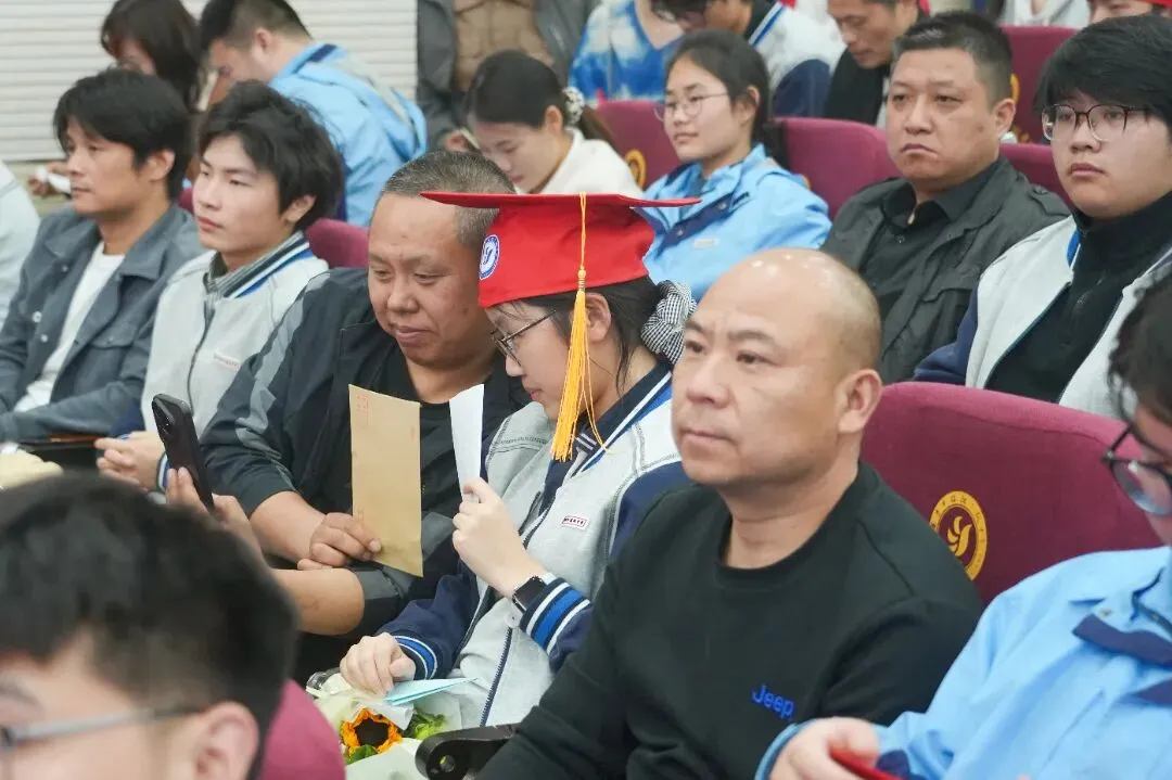 同学与家长共同观看了亲情视频《一碗蛋炒饭》。温情满满的故事,戳中了每一位学子与家长心底最柔软的角落,不少同学红了眼眶,更深刻体会到了父母十八年来的默默付出与深沉爱意。