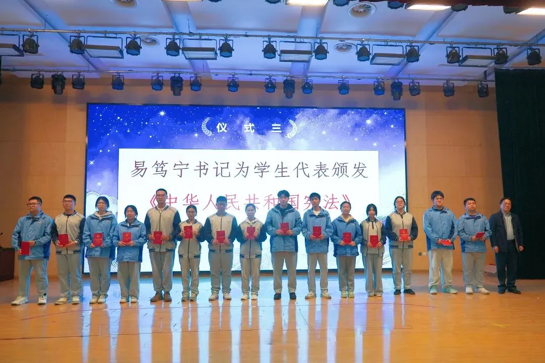 十八岁,是从懵懂依赖走向独立担当的人生拐点,更是以青春之我、奋斗之我奔赴未来的全新起点。校党总支书记易笃宁为各班代表郑重授予《中华人民共和国宪法》,勉励同学们以责任与担当书写青春华章。