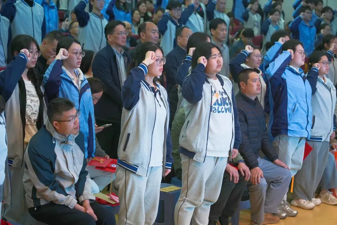 在领誓人的带领下,全体高三学子庄严宣读《成人誓词》,铮铮誓言响彻校园,这是少年们对成年的郑重承诺,更是对未来的坚定期许。