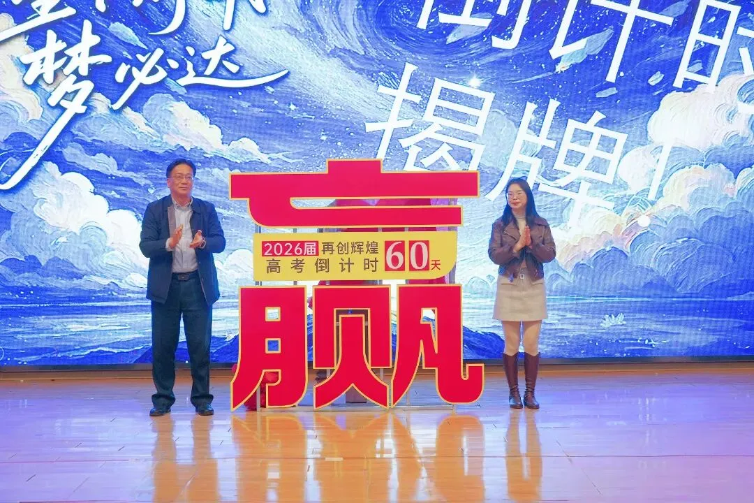现场举行了高考倒计时揭牌仪式,易笃宁书记与家长代表携手,共同为高考倒计时牌揭牌,吹响高考冲刺的号角。