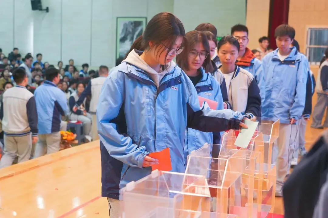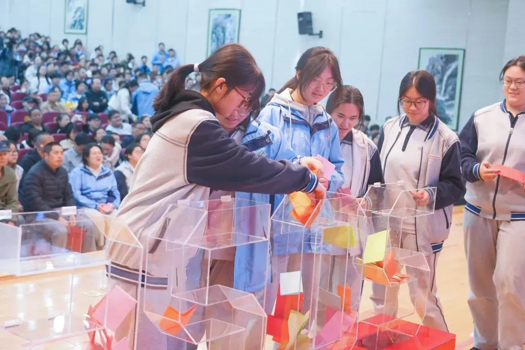 活动最后,各班同学将写有梦想与目标的心愿书郑重投入心愿箱中。一张张心愿书承载着十八岁的憧憬与期许,寄托着对未来的向往与追求。全场师生共同唱响《真心英雄》,悠扬而坚定的歌声回荡在校园,本次成人仪式暨一模表彰大会也在歌声中圆满落下帷幕。