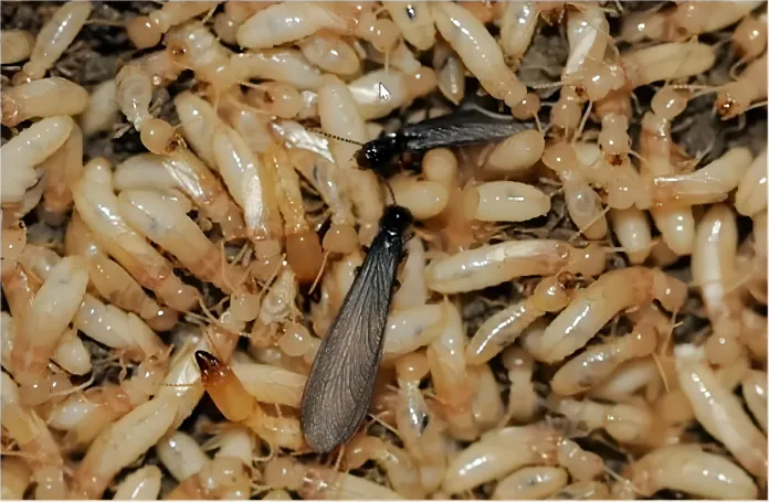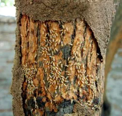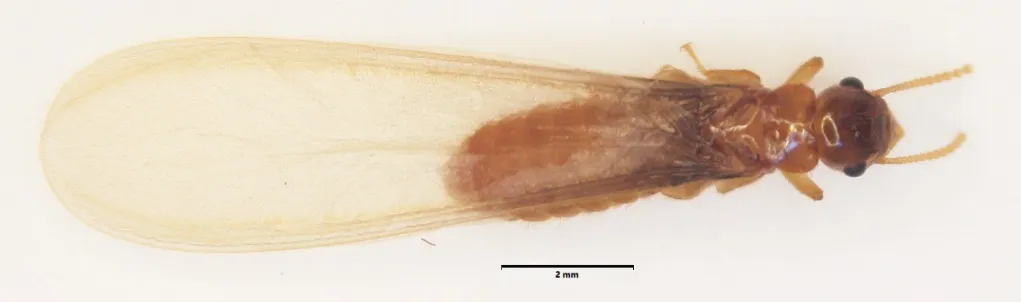 乳白蚁:土木两栖性,可在地下、树干里以及房屋的高层筑巢。为世界上破坏房屋建筑和古树名木最为严重的白蚁。有翅成虫体形中等,体色呈黄褐色,翅呈淡黄色,一般于闷热潮湿的傍晚分飞。