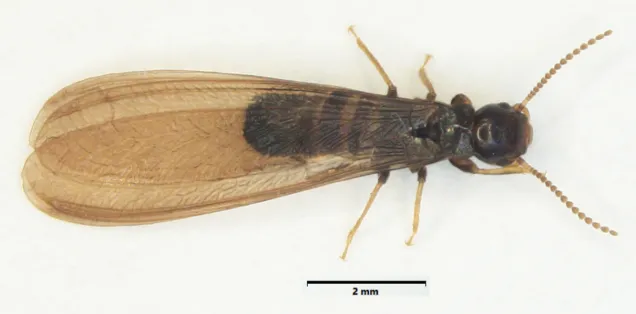 黑胸散白蚁:土木两栖性,为我市危害房屋建筑的优势白蚁种群,大多数危害接地的木结构,较少危害二层以上的房屋。有翅成虫体形较小,体色黑,翅为灰褐色,一般于中午前后分飞。