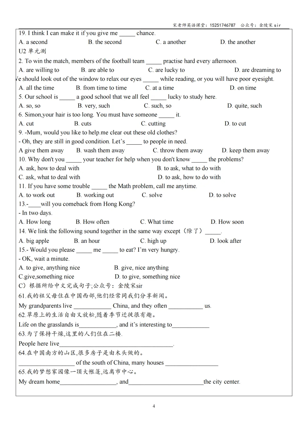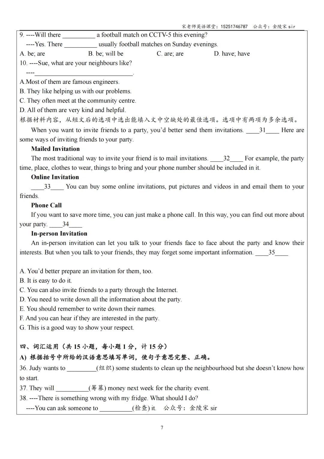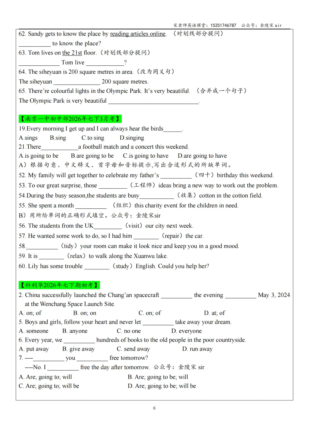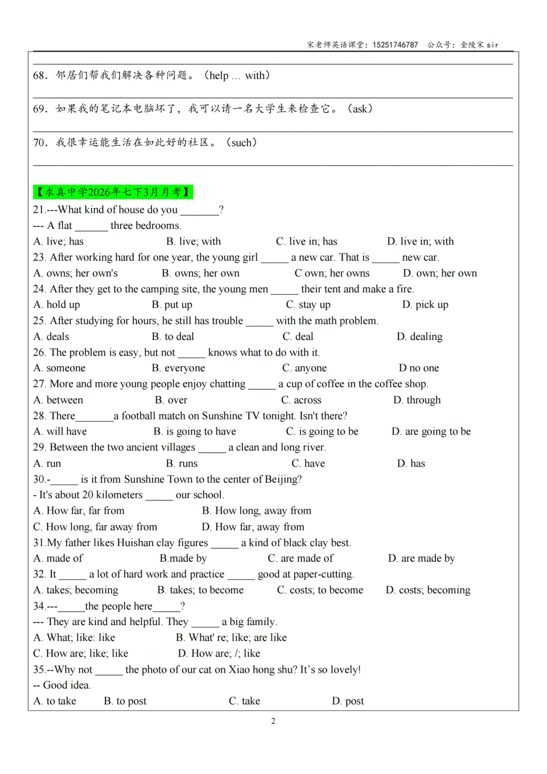 内容:南京各区名校七下3月月考真题单选/词汇/翻译精选易错题;