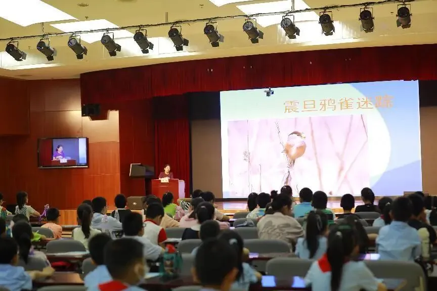 本次活动邀请的科普专家是江苏省科普作家协会会员、《中国鸟类观察》编辑部编辑袁屏女士,十多年来,她走遍祖国各地,探寻大自然的奥秘,记录了很多珍稀物种,尤其是鸟类。《南京本土生物多样性科普丛书》中的《苇荡啁啾——震旦雅雀迷踪》一书,就是她参与编写的。她的科普讲座围绕《苇荡啁啾——震旦雅雀迷踪》,以摄影作品、视频以及出版的图书分享观察动物、保护自然的经历,引导小朋友爱护环境、关爱地球。