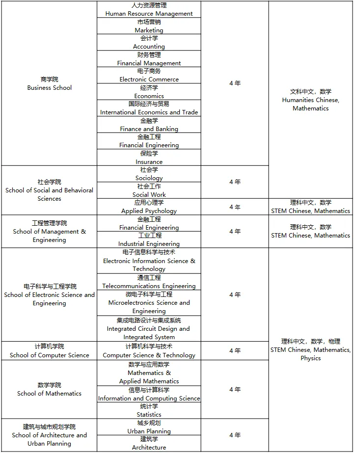 *自2026/2027学年开始,所有申请本科专业的国际学生须参加由中国教育部国家留学基金管理委员会组织的“来华留学本科入学学业水平测试”(China Scholastic Competency Assessment,以下简称“CSCA测试”),并提交测试成绩。每年提供5场测试,分别于1月、3月、4月、6月、12月;测试时间、形式、费用等详见CSCA官方网站(www.csca.cn);