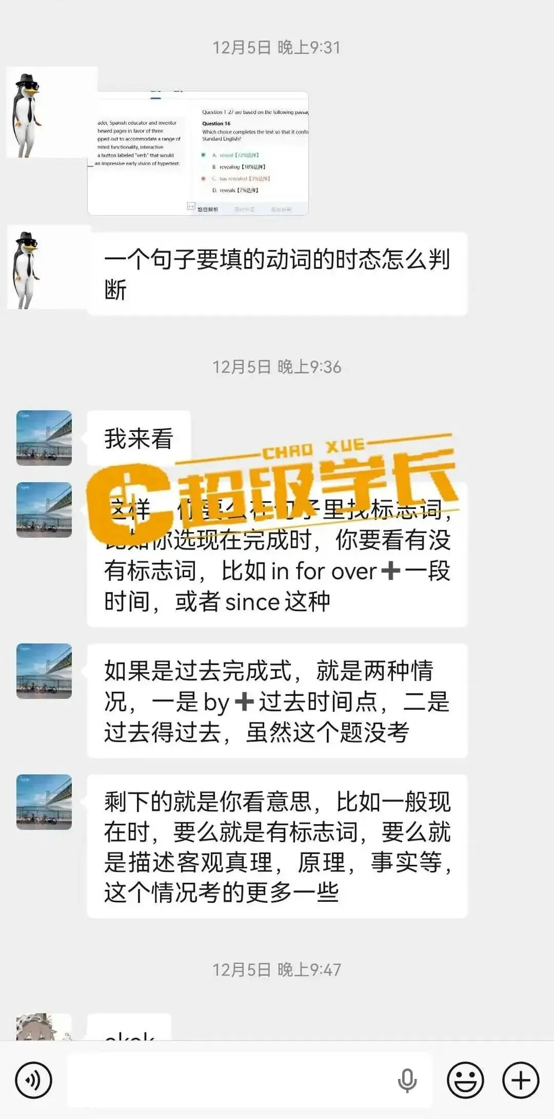 学习过程中,老师全程负责:一对一口语纠错、单词听写监督、作业精批、定期模考反馈……你不是一个人在战斗。即便结课后,学习也不会停止——老师会帮你制定结课后的复习计划,持续答疑,助力出分。