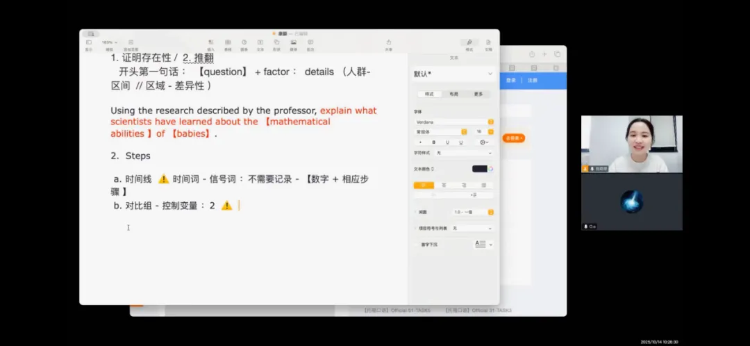 以写作为例,老师会从审题、结构、论证、词汇、语法五个维度逐一标注,告诉你哪里跑题了、哪个论点可以展开、哪句话换成什么表达能提分。口语作业同样如此,老师会逐句听你的录音,指出发音、流利度、逻辑连接的问题,并给出示范。你交上去的每一份作业,都会被认真对待。