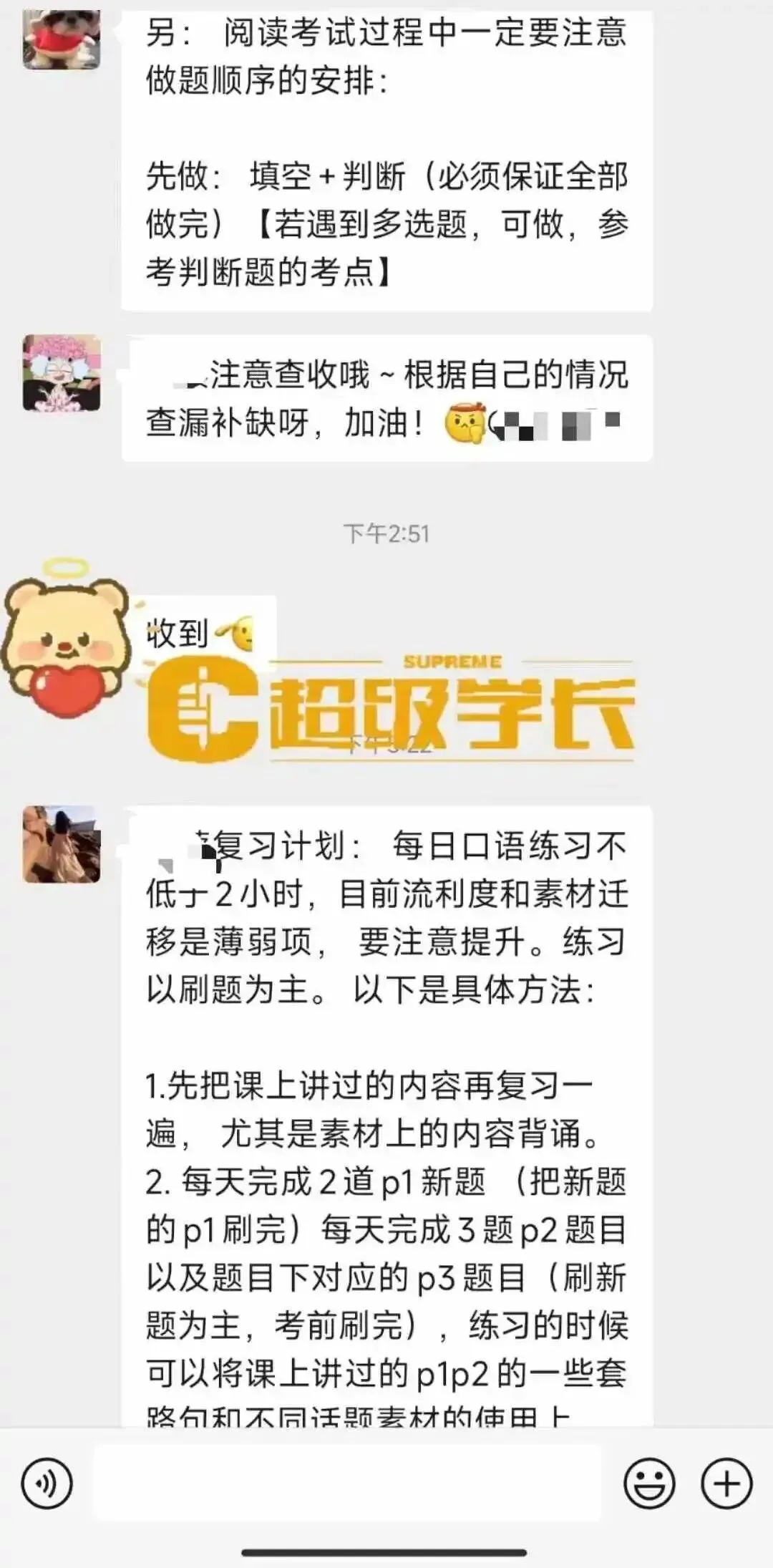 写作和口语之所以难提分,核心原因是你不知道自己错在哪。市面很多机构的作业批改是助教完成,或者只给一个分数和几句模板化评语。但在南京超级学长雅思班,每天的作业都由任课老师亲自批改。