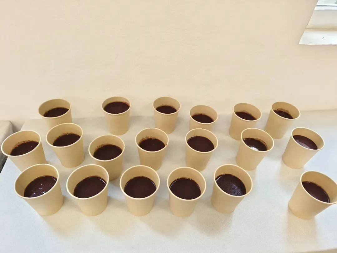 签到就坐后,幼儿园厨房自制的“黑米浆”暖心登场!一杯杯温热细腻的米糊,不仅暖胃更暖心,家长们也在品尝中直观感受到了园所的膳食品质。