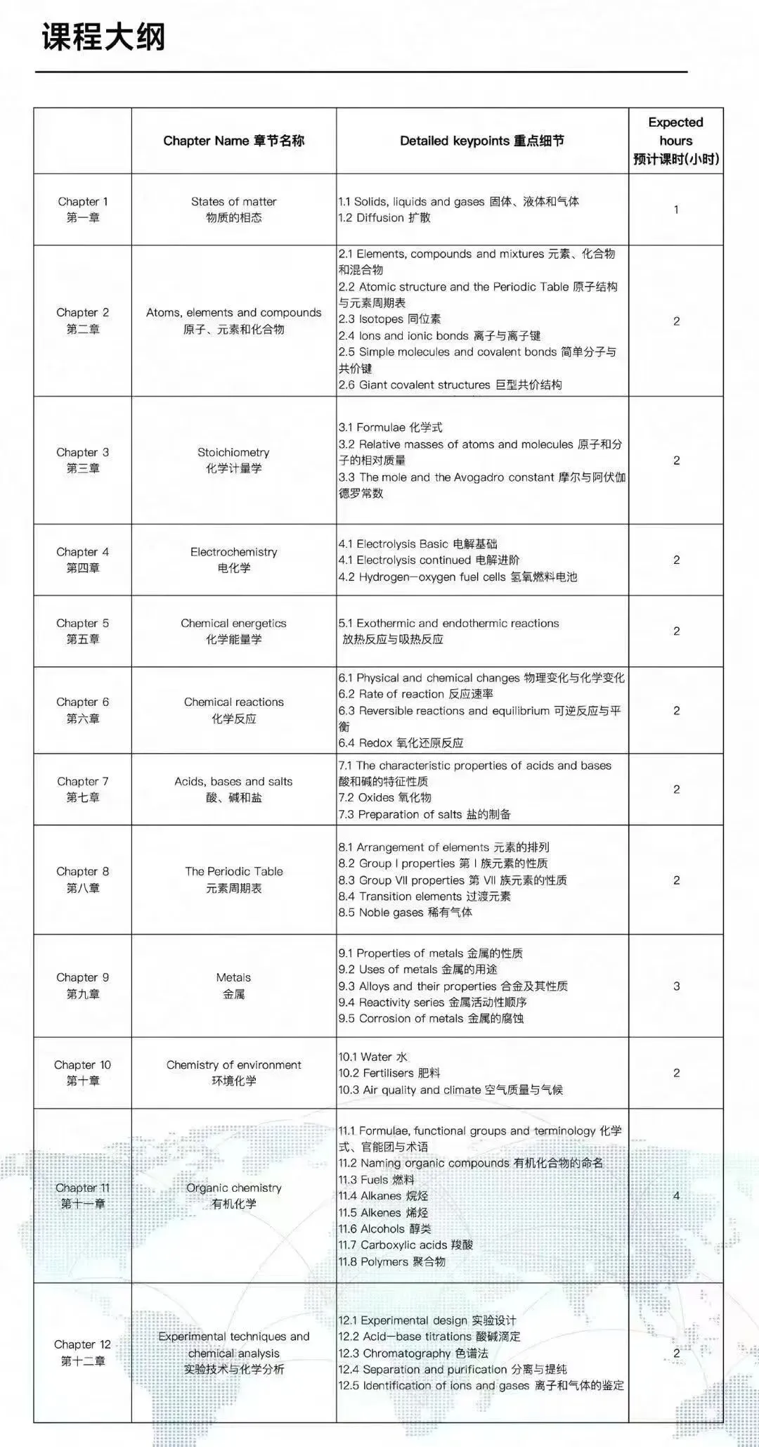 以上分别是IGCSE化学(CIE)/(爱德思)考试局暑假班课程大纲