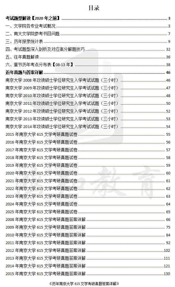 2008-2024年南京大学615文学考研真题答案详解