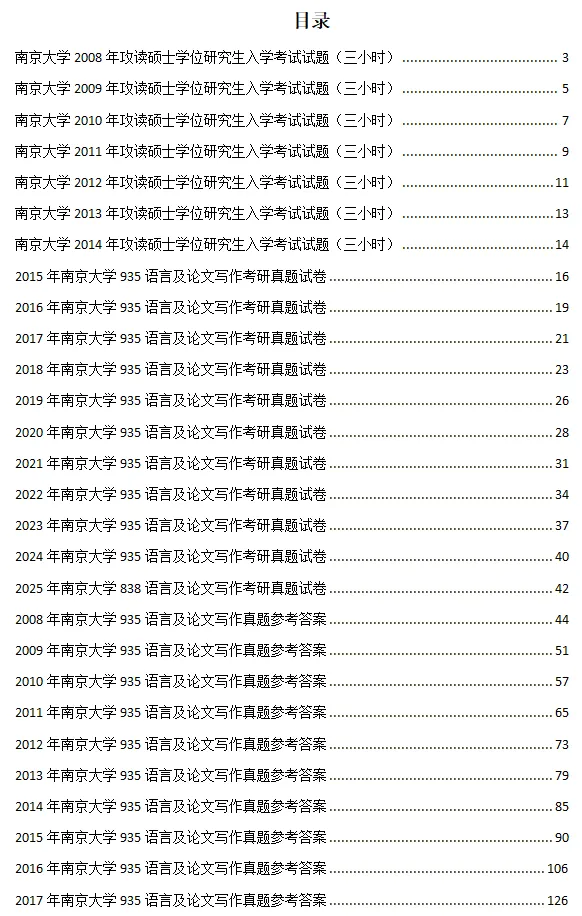 2008-2023年南京大学935语言及论文写作考研真题答案详解【写作部分17年之前有范文;18年之后只有思路没有答案】