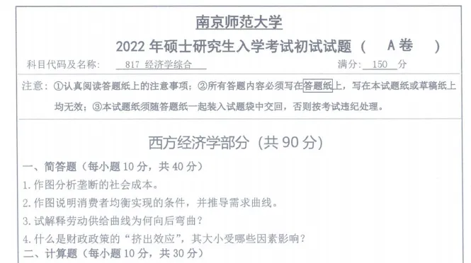 2008-2022年南京师范大学815经济学综合考研真题试卷