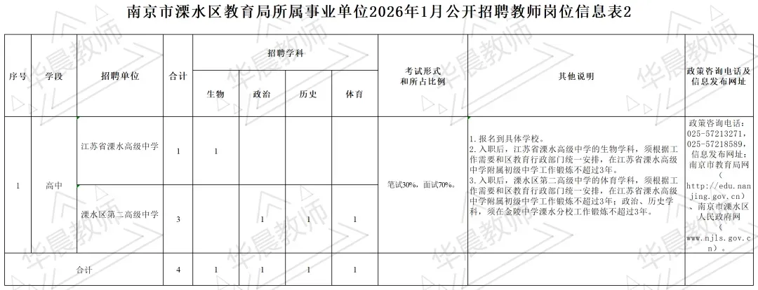 原公告:南京教师招聘||71名编制!南京市溧水区教育局所属事业单位2026年1月公开招聘教师公告
