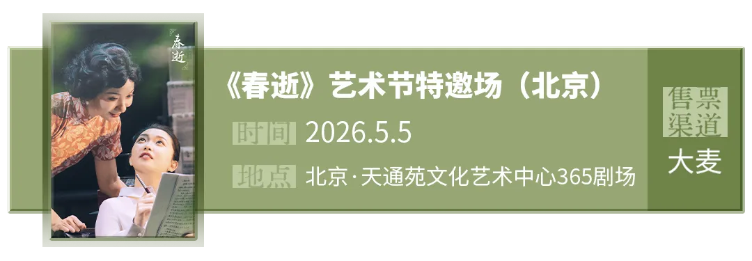 2026年6月13日-14日,话剧九人作品《春逝》将来到南京·江苏大剧院。承蒙观众厚爱,两天两场的演出已经全部售罄。我们将在6月13日(周六午)加开一场,开票在即——期待能与更多观众在「令人向往的夏日」相逢。