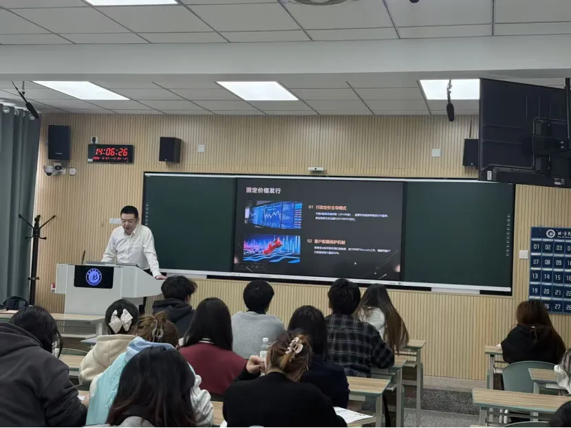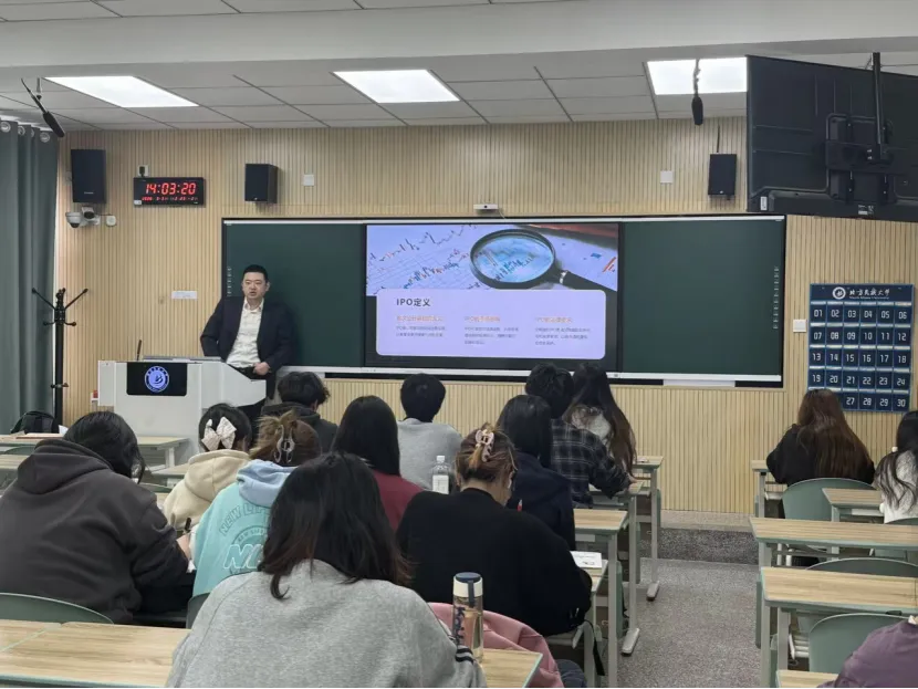 宣讲中,讲师杨涛采用由总到分、由大到小的逻辑框架,细致讲解了资本市场的整体概况,为在场学生清晰梳理了我国资本市场的结构,并深入阐释了一级市场与二级市场的内在联系及未来发展趋势。此次理论讲解覆盖面广且重点突出,直观展现了我国资本市场欣欣向荣的蓬勃发展态势,为学生构建了扎实的知识基础。随后,为帮助学生更深刻地理解企业上市流程,活动通过角色扮演的形式,让学生亲身参与到公司上市的各个关键环节中,使他们在实践体验中掌握了上市流程所需的专业知识与注意事项,进一步深化了对资本市场的认知。