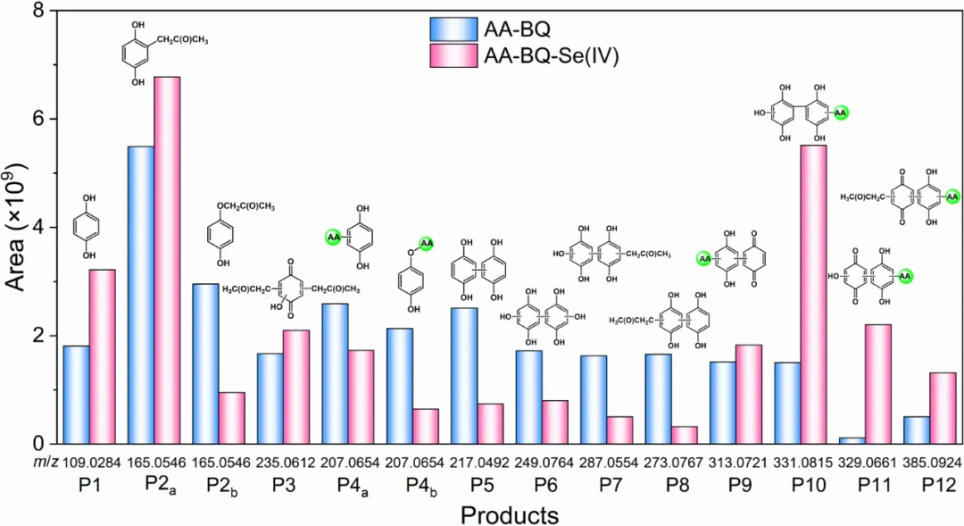 pathways of AA and BQ in the presence and absence of Se(IV). P1-P12
