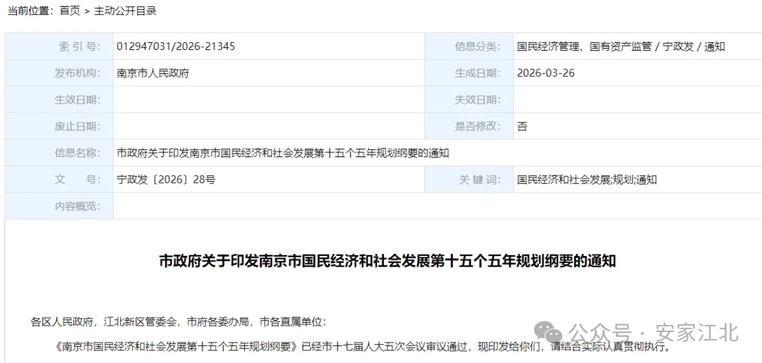 就在这两天,南京市国民经济和社会发展第十五个五年规划纲要的通知出炉,作为指导南京未来五年发展的纲领性文件,该份文件意义非凡,对于未来5年南京发展指明了方向。