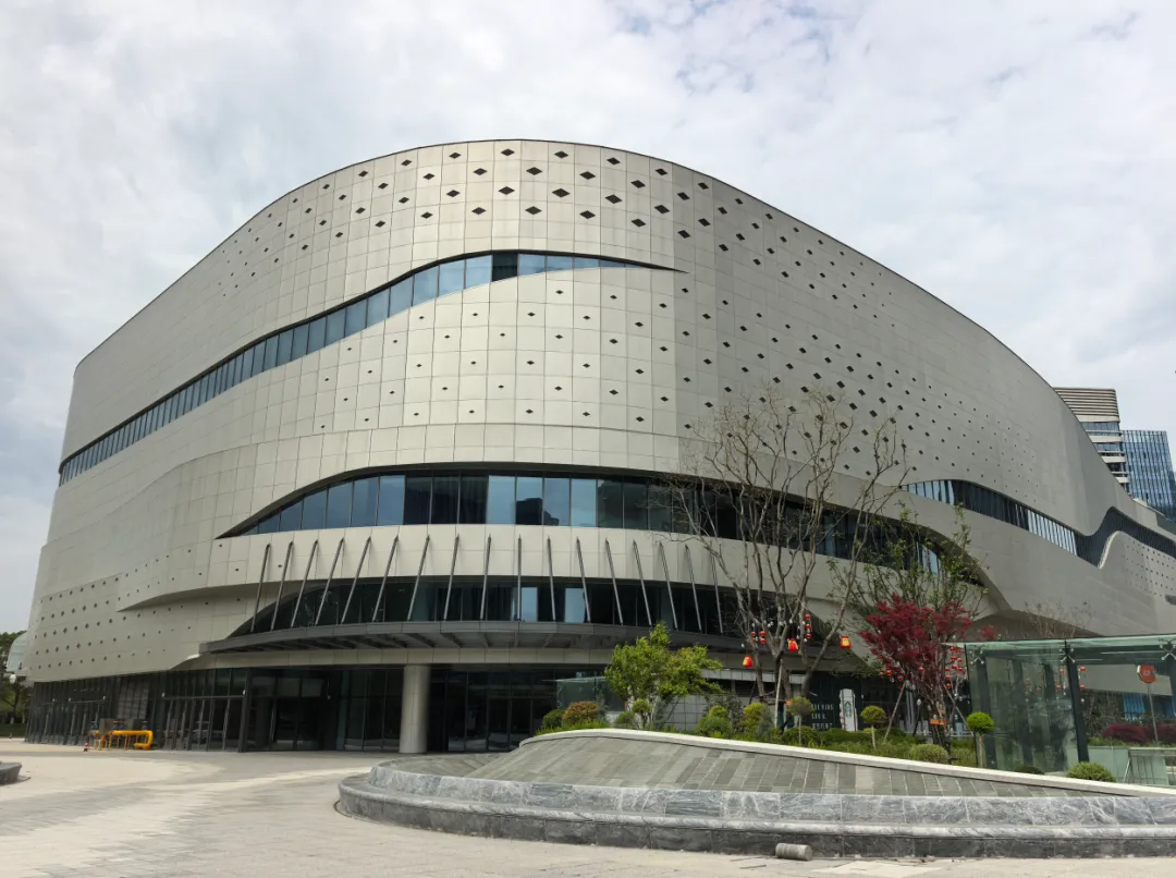 从外围来看,整个商场已经露出全貌,建筑外观上融入浩瀚的星空、起伏的山脉、延绵的溪流等生态元素,兼具科技感与轻盈线条感。