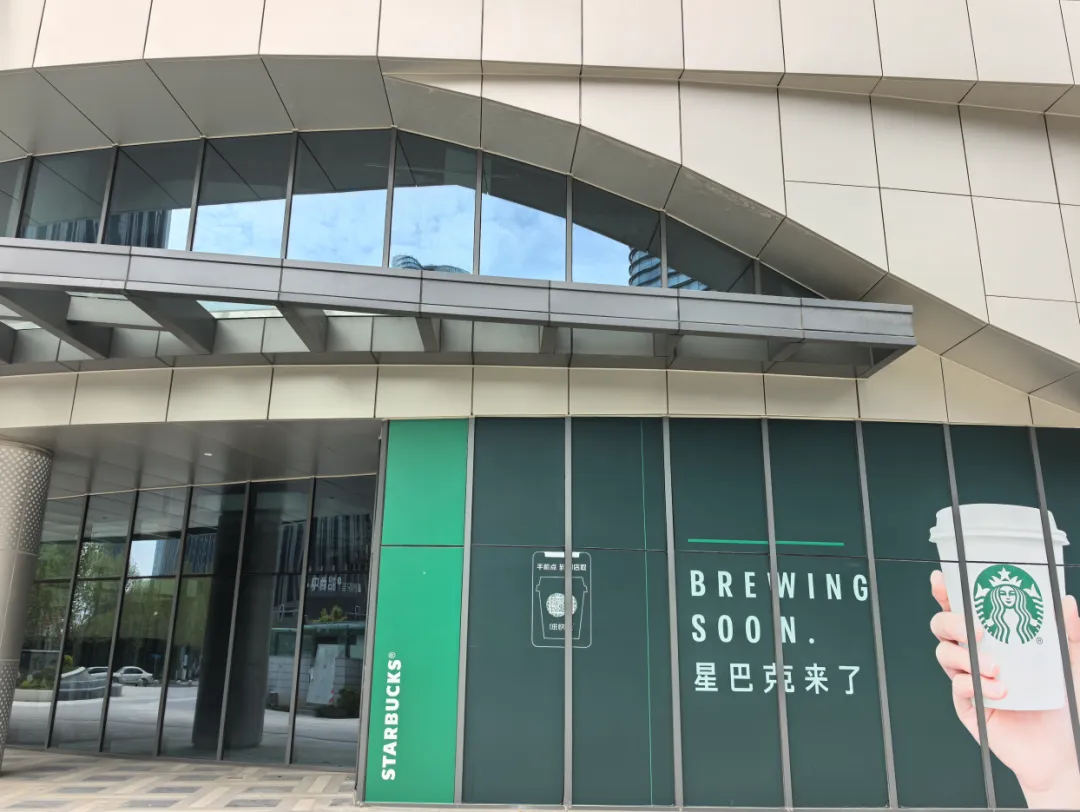 备受关注的盒马鲜生超市、星巴克咖啡、达美乐披萨等网红品牌已经上墙。“即将开业,敬请期待”的标语十分醒目。