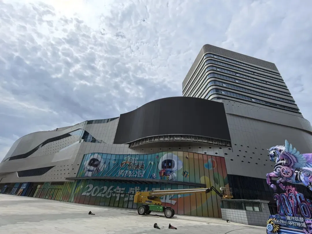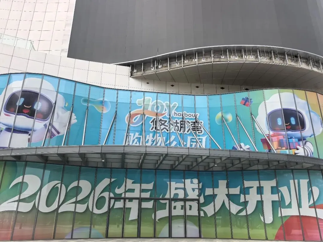 上秦淮最大的裸眼3D大屏,不过今天白天没有亮灯,底下就是“悠湖湾购物公园,2026年盛大开业”的宣传墙。