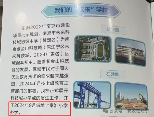 未来科技城初级中学即紫金山科技城(原未来科技城,2024年更名)区域配套中学,位于玉麟街以东、秦县路以南。根据规划,学校拟建设为10轨30班的公办全日制初级中学,学校预交付时间为2026年8月。