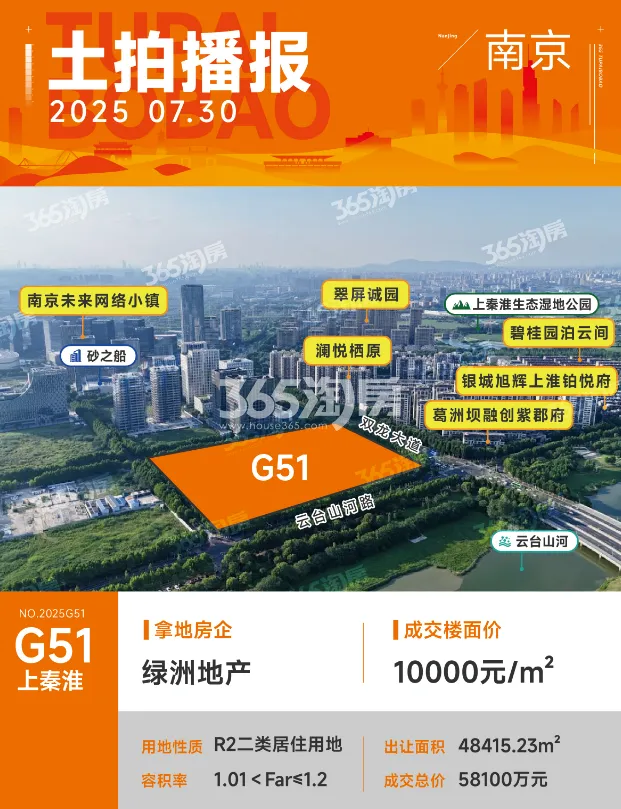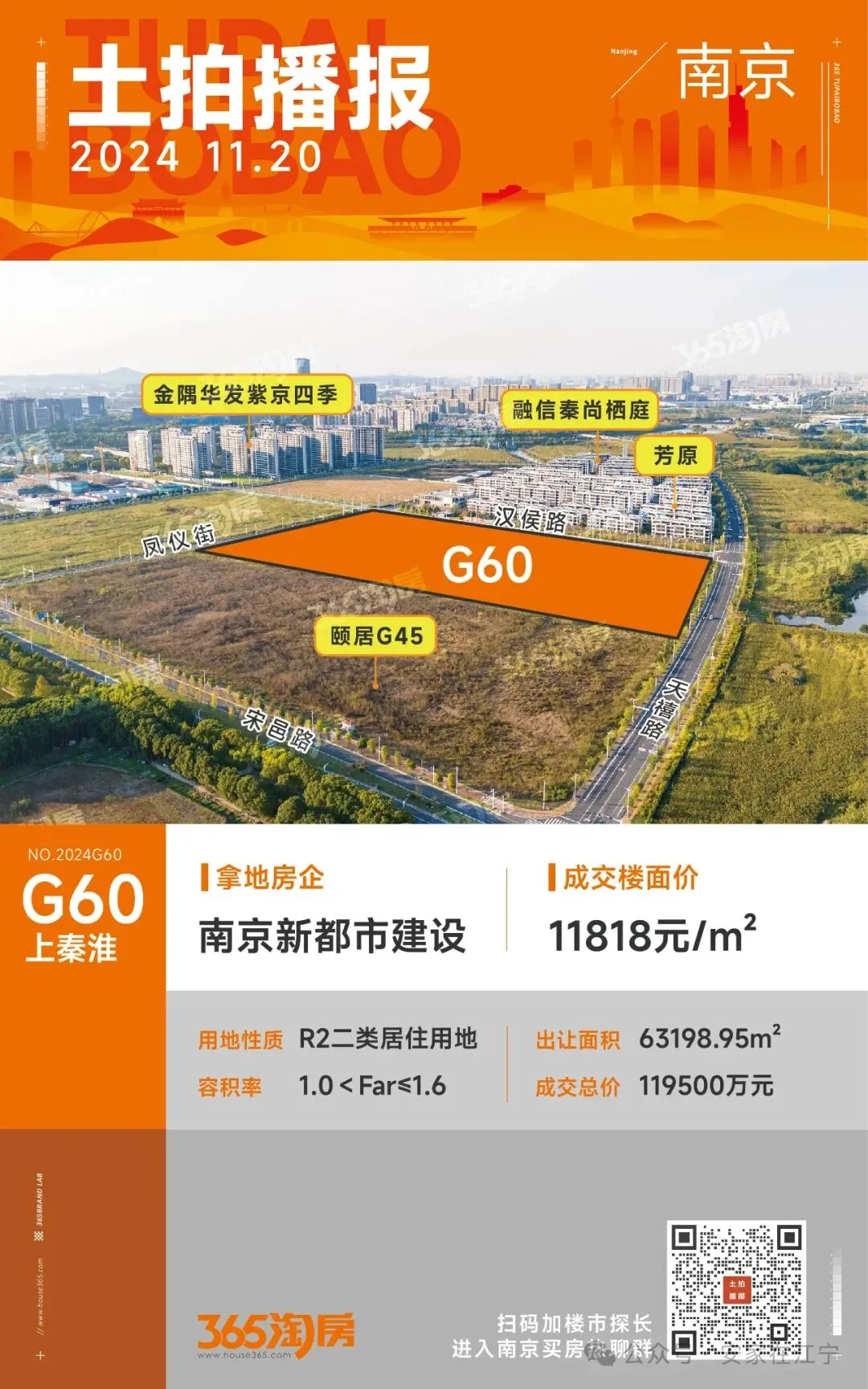 南京新都市G60:该地块与被收回的G45地块位置相邻,于2024年11月30日成交,楼面价11818元/㎡。