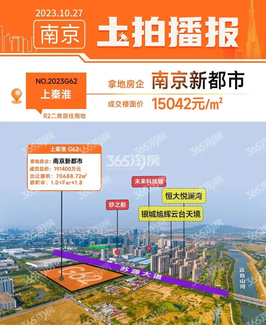 南京新都市G62:该地块于2023年10月成交,楼面价15042元/㎡,目前未有启动消息传出。