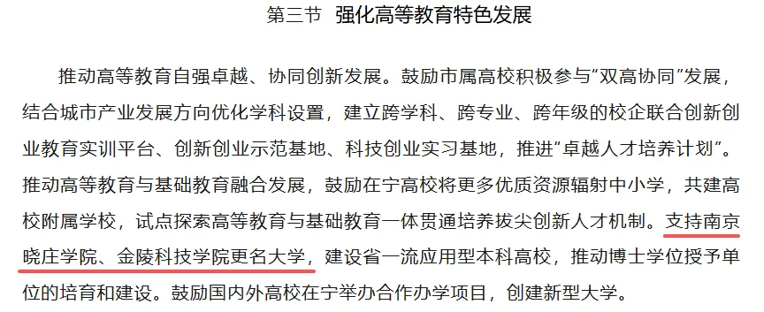 南京:支持南京晓庄学院、金陵科技学院更名大学