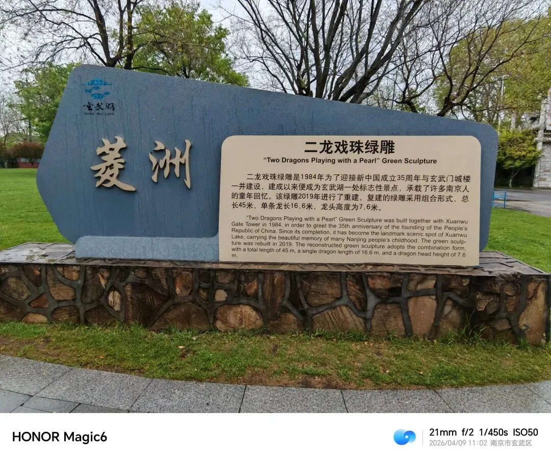 根据景区宣传牌介绍,经考古证实,玄武湖是长江古河道遗留下来的一部分,自先秦时期的“桑泊”开始,先后有“后湖”、“北湖”、“太液池”、“昆明池”等近20个名称,“玄武湖”之名始于南朝刘宋元嘉二十三年。