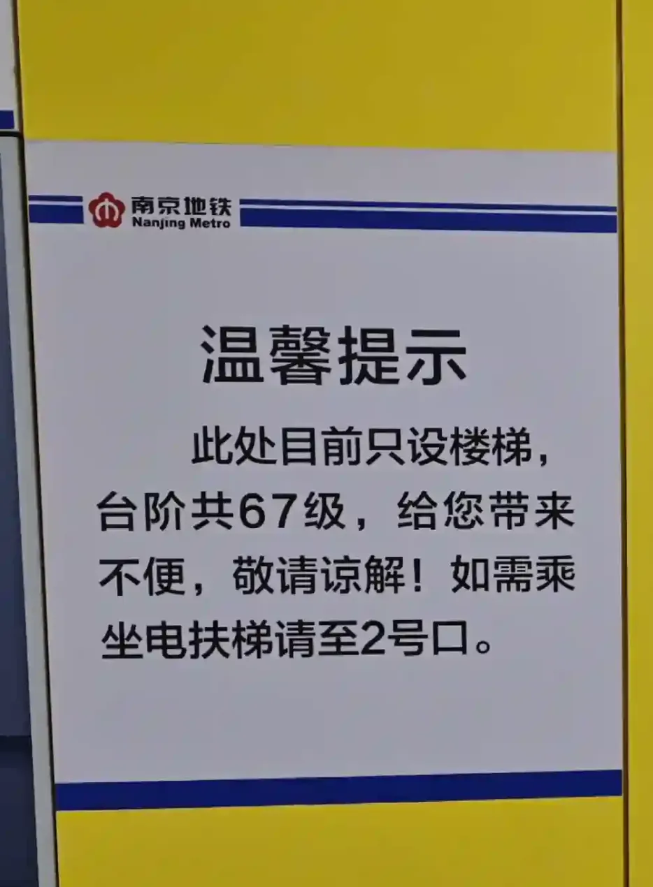 当有人避雷南京地铁里的各类标识不够醒目时,它马上做出了XXXL号的指示牌,简直就是地铁届的“老人机”: