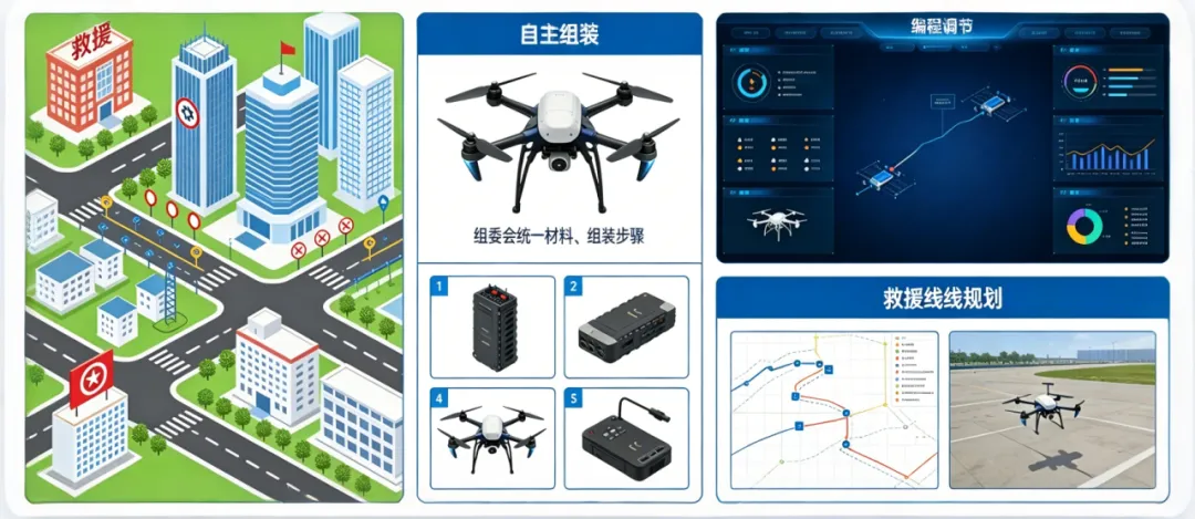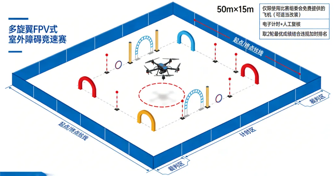 3.参赛无人机需符合国家相关管理规定,机身需粘贴队伍名称与编号,多旋翼需提前在社团实验室完成设备合规检查(检查标准由社团告知)。
