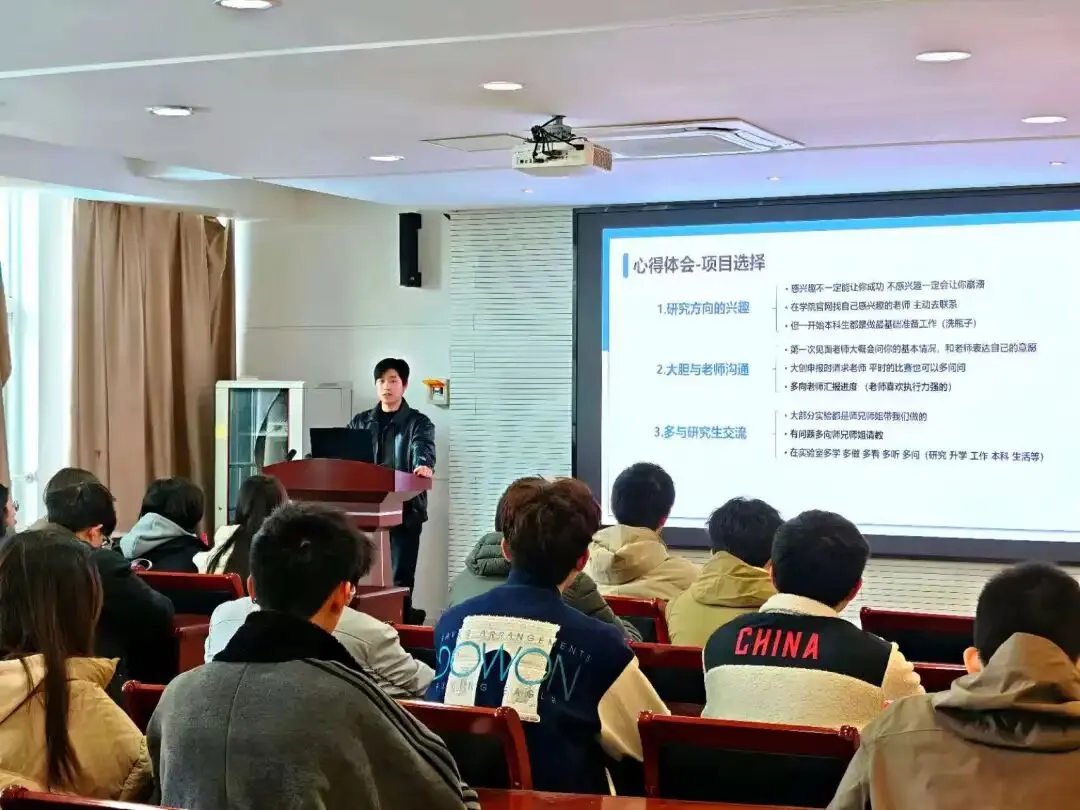 李振宁同学结合个人科研成长历程,生动讲述从实验室入门到论文发表、参与学科竞赛的完整路径,鼓励同学们脚踏实地、勇于探索创新。