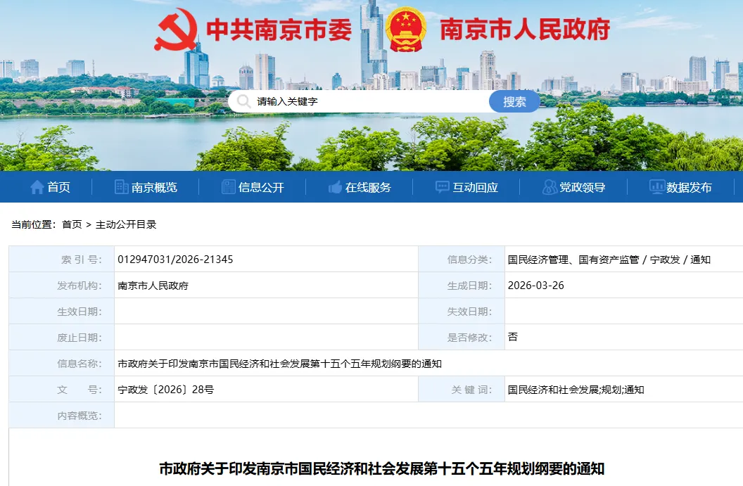 日前,《南京市国民经济和社会发展第十五个五年规划纲要》出炉。