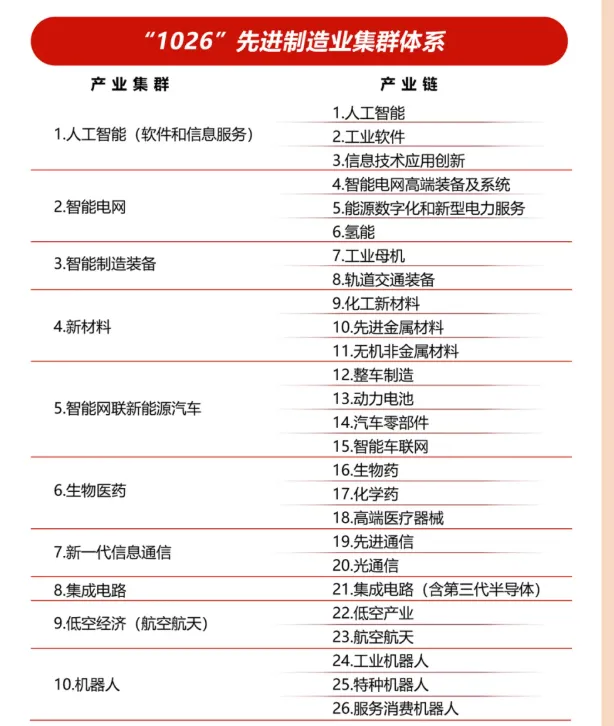 核心体系:10大新兴产业集群 + 26条重点产业链。
