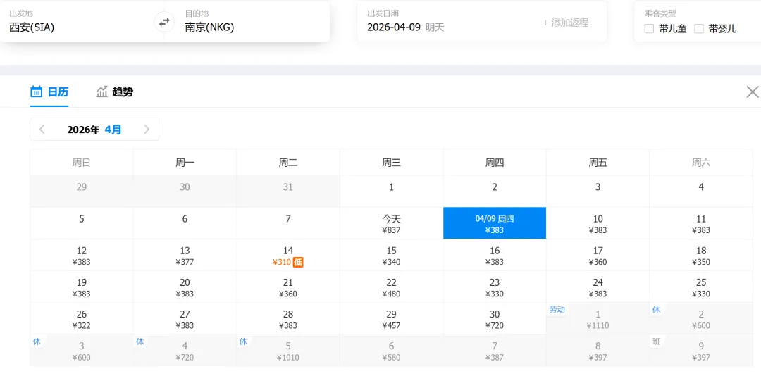 ✈️机票:西安咸阳机场飞禄口机场,约2小时。(4月机票最低310元)航班较多,适合只有周末两天时间的"特种兵"。