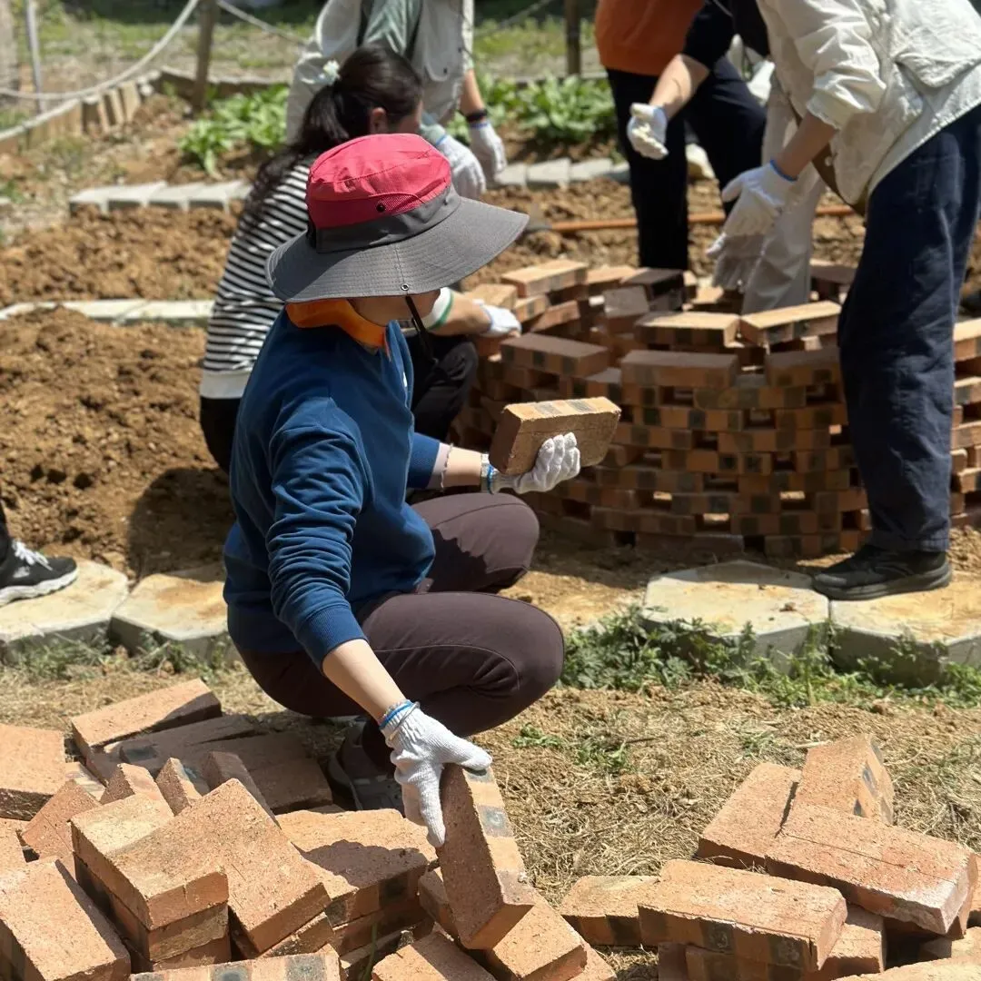 接着,我们来到场地上投票选择螺旋花园要搭建的位置。不是图纸上的抽象线条,而是真实的土地、砖块和工具。