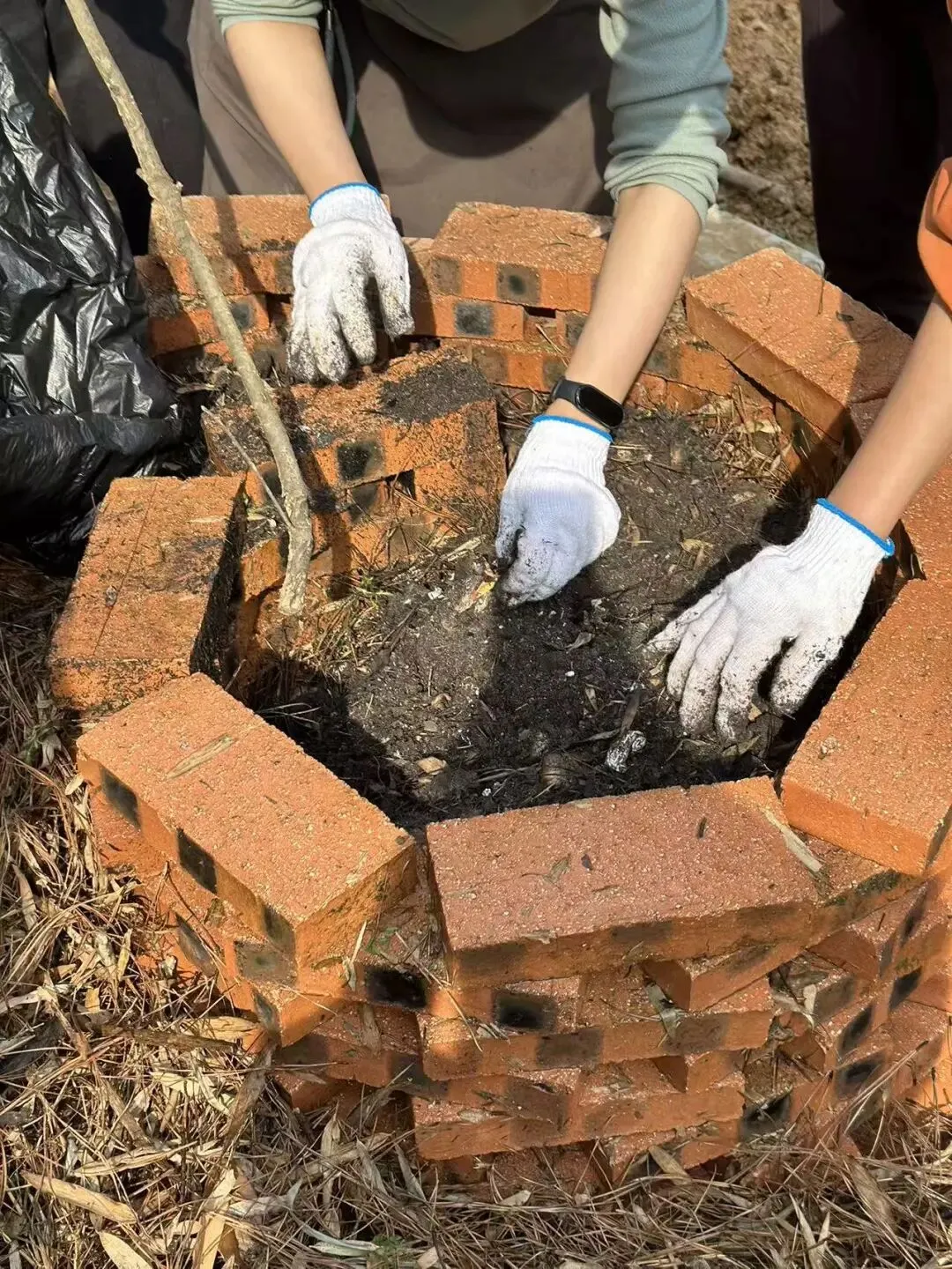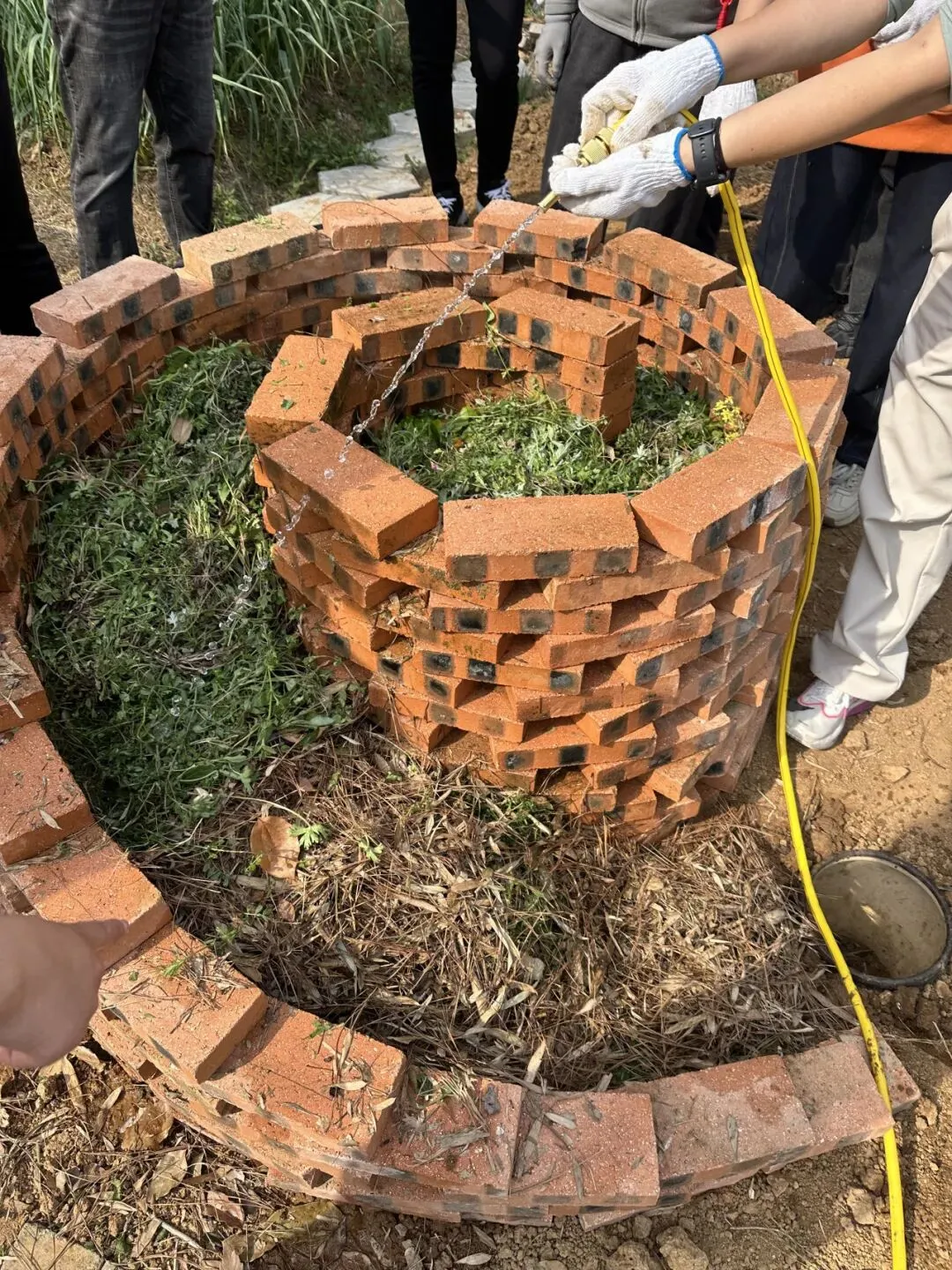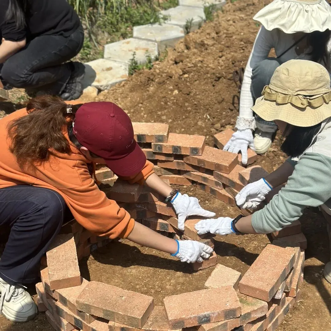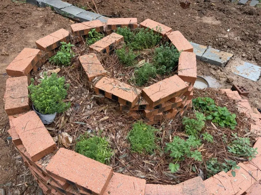 最后,当香草小苗和种子被小心翼翼地种下,浇透水,一座立体的、活的螺旋花园就诞生了。它不是完美的,但它是我们自己亲手搭建的——每一块石头、每一捧土,都经过我们的手。