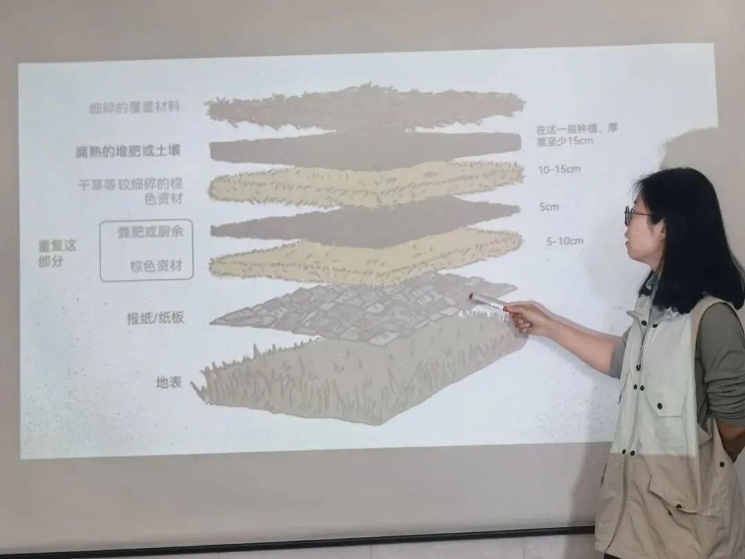 “厚土栽培”的方式也被用在了香草种植中——不用翻土、不破坏土壤结构,通过层层覆盖棕色垃圾(枯叶、干树枝、干草等)和绿色垃圾(厨余、新鲜的草与树叶等),让土壤自己变得松软肥沃。