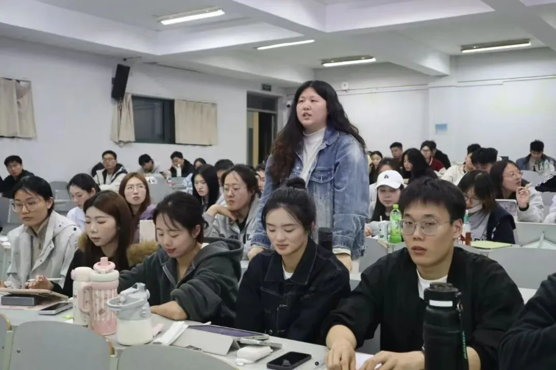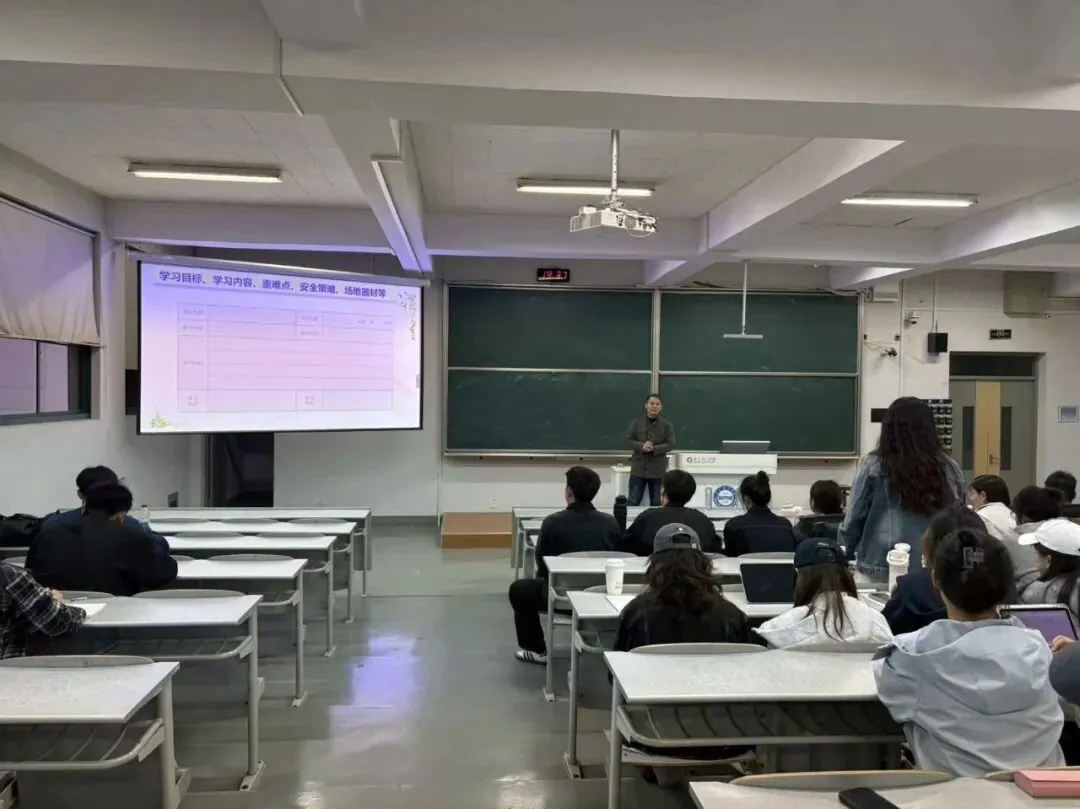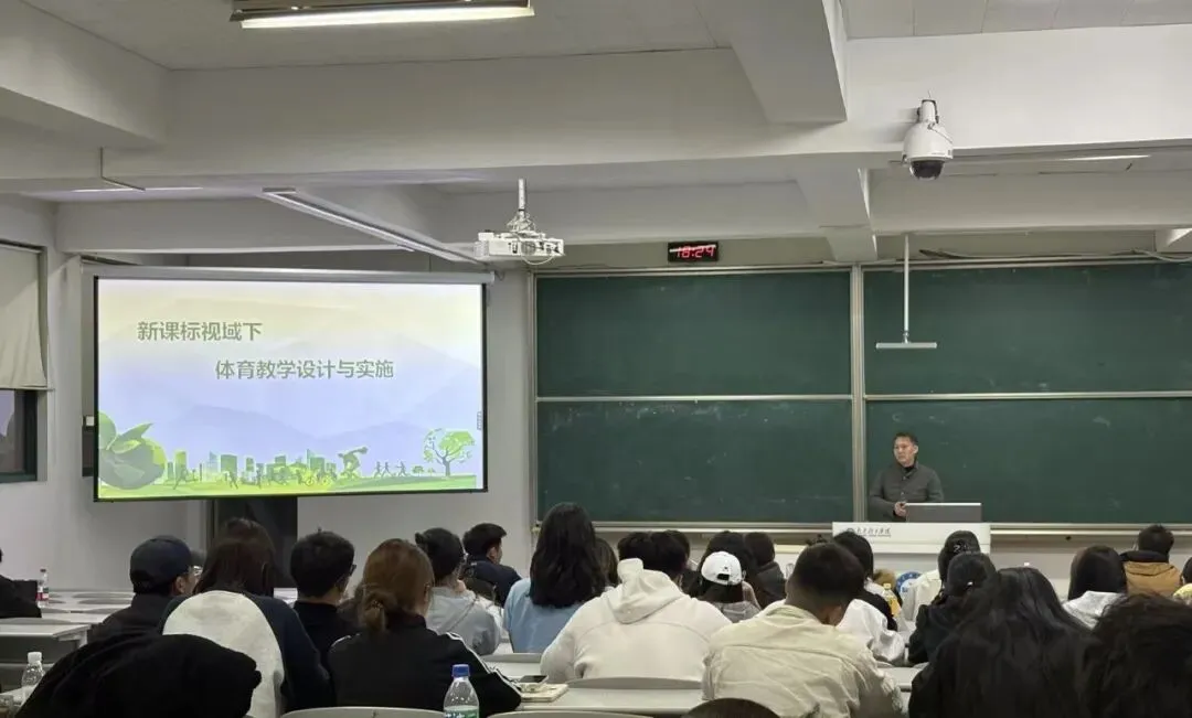 开幕式后,杨崇保带来《新课标视域下的体育教学设计》专题讲座。他结合多年教学实践经验,紧扣新课标要求,围绕教学目标、内容、方法、流程四大核心维度,结合教学案例拆解教学设计技巧,指出常见问题并给出优化建议,为同学们备赛提供专业指导。培训现场,杨老师还与同学们互动,引导大家主动思考,进一步理清教学设计思路,现场氛围热烈。